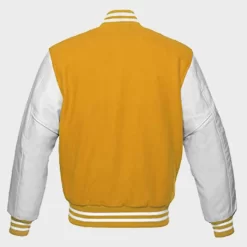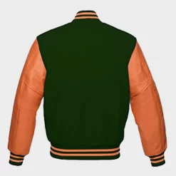 Blouson De Baseball Aviateur En Laine Vert Varsity Letterman Manches En Cuir Jaune Doré
