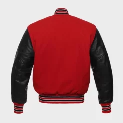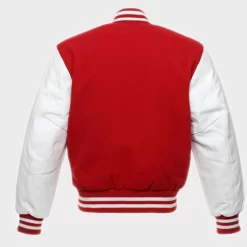 Blouson De Baseball Aviateur En Laine Rouge Varsity Letterman Manches En Cuir Blanches
